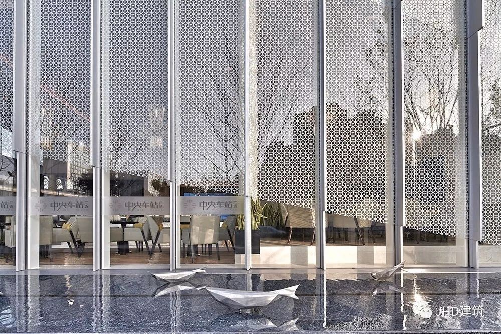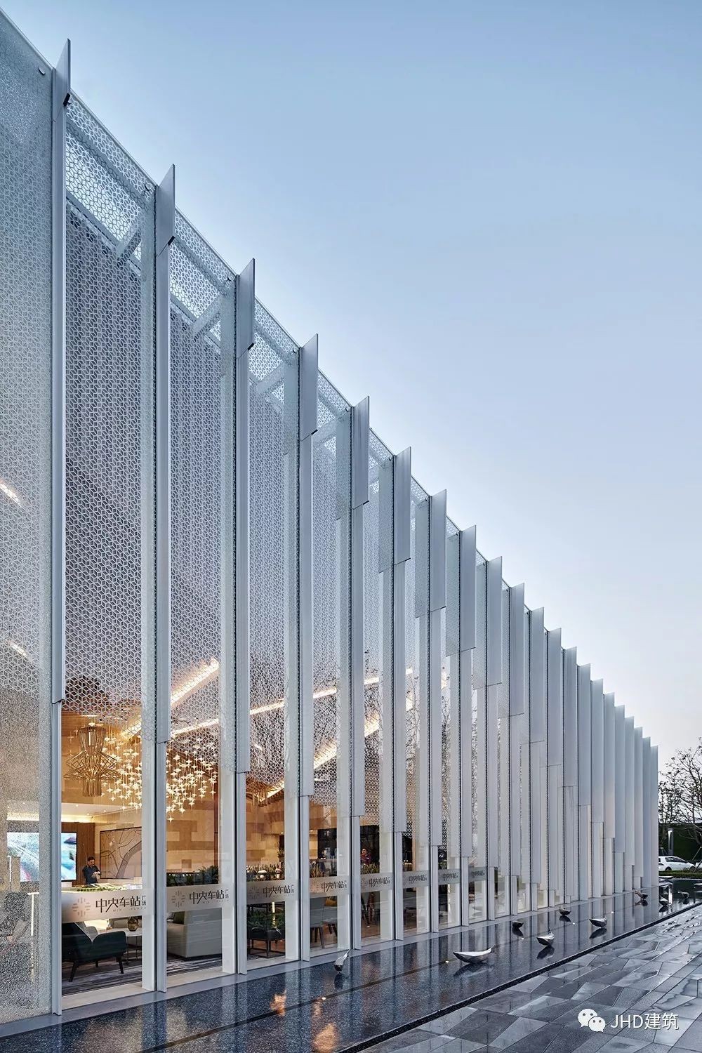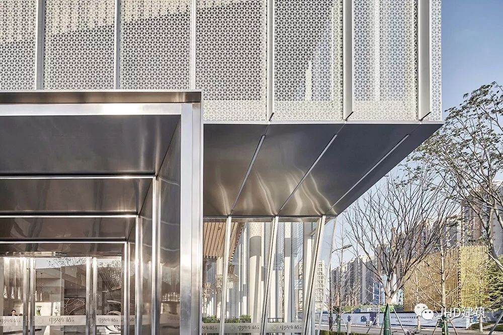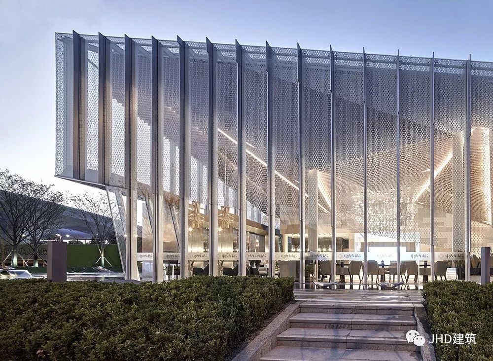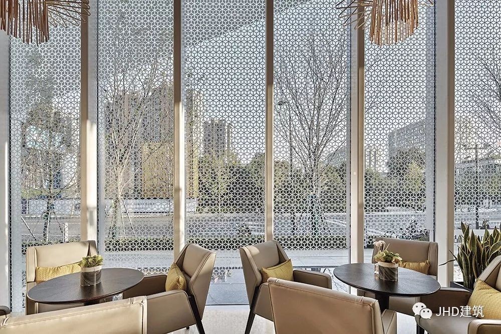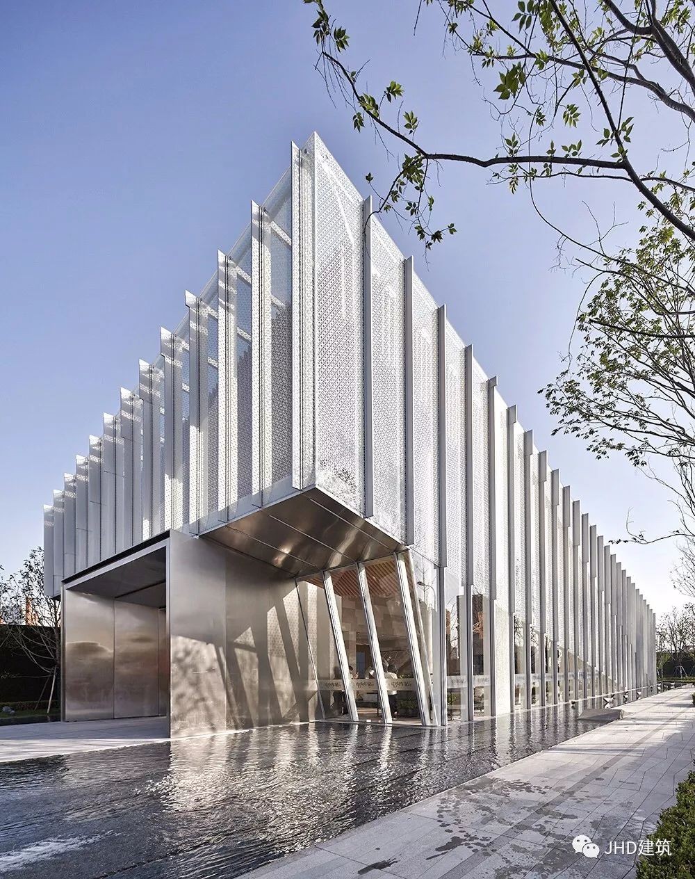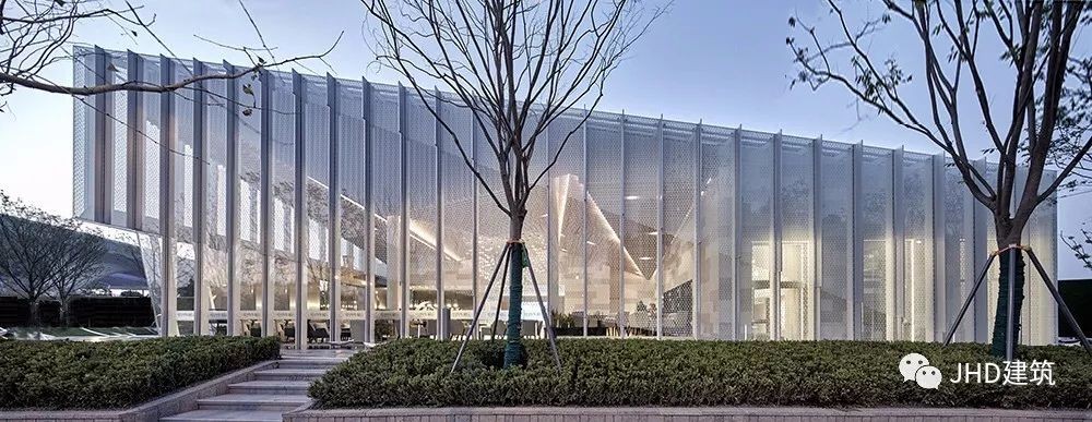 木纹肌理与玲珑洁白的幕墙相互映衬,